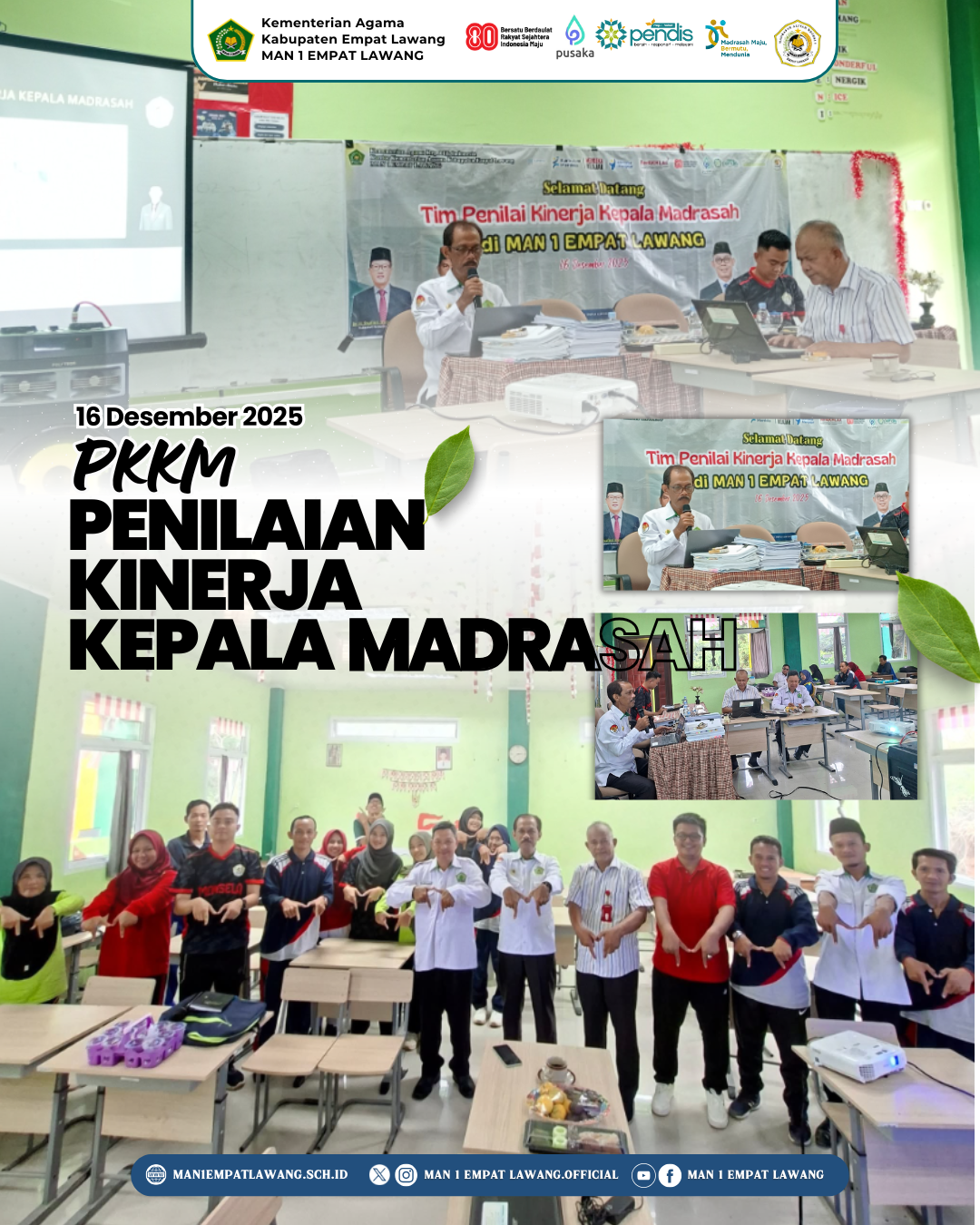 Kepala Madrasah Aliyah (MA) Negeri 1 Empat Lawang, Agus Sutiono, S.Pd., melaksanakan Penilaian Kinerja Kepala Madrasah (PKKM) Tahun 2025. Kegiatan tersebut berlangsung di ruang kelas XII MAN 1 Empat Lawang pada Selasa, 16 Desember 2025, dan berjalan dengan khidmat.