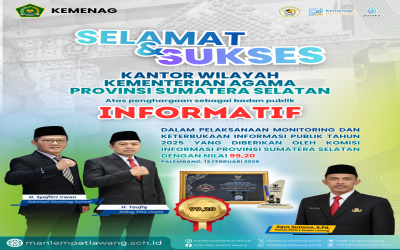 Selamat dan Sukses Kanwil Kemenag Sumsel Atas Penghargaan Sebagai Badan Publik Informatif